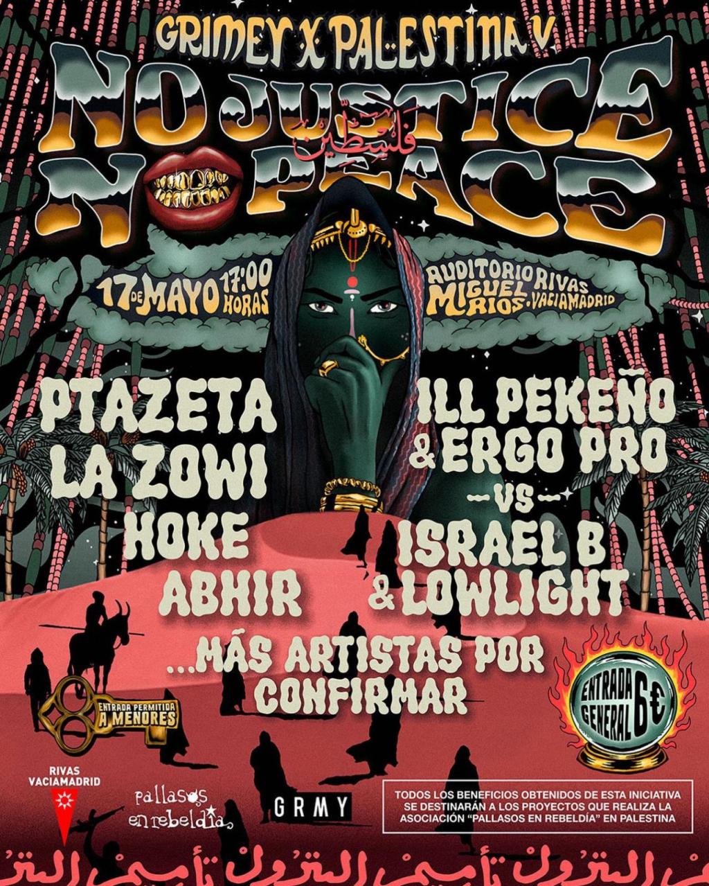 De hecho, gracias al sold-out conseguido en la tercera edición del festival, celebrada el pasado mayo de 2022, lograron recaudar los suficientes fondos como para viajar a Palestina para brindar apoyo a sus ciudadanos, con la colaboración de la asociación ‘Pallasos en Rebeldía’. El viaje que recorre ciudades como Nablus, Jerusalem o Bethelehem, en el que participaron los artistas III Pekeño y Ergo Pro, está documentado en su canal de YouTube, Grimey TV.