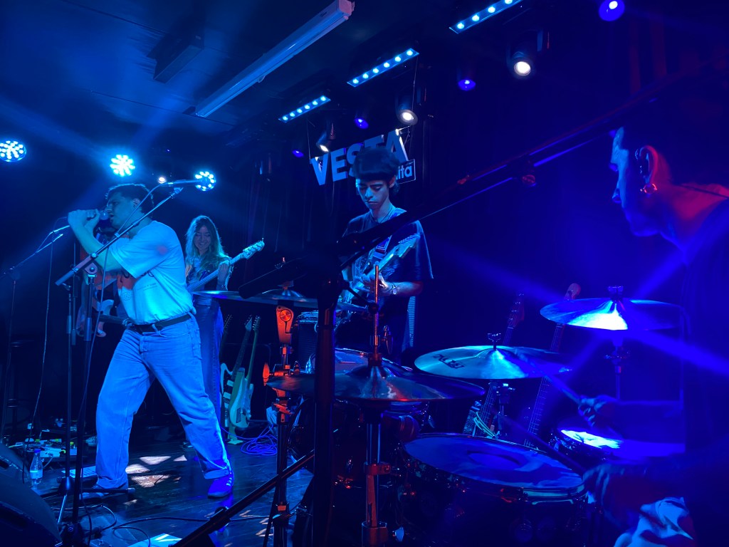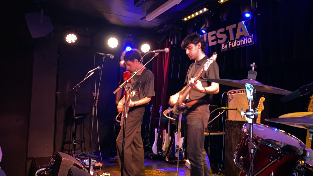 Directos desde Valencia, tras un viaje de unas cuatro horas en coche, han llegado a Vesta, la sala de conciertos más reconocida del mítico barrio de Chueca Nuevos Vicios, una banda de rock compuesta por Pablo como cantante y guitarrista rítmico, Luis en la batería -demostrando una destreza brillante en su manejo-, David al bajo y Samu, al igual que Pablo, de guitarrista y vocalista. Es la primera vez que vienen a Madrid para dar un concierto, si bien ellos contaban ya con multitud de seguidores en la capital desde que la banda fue fundada.