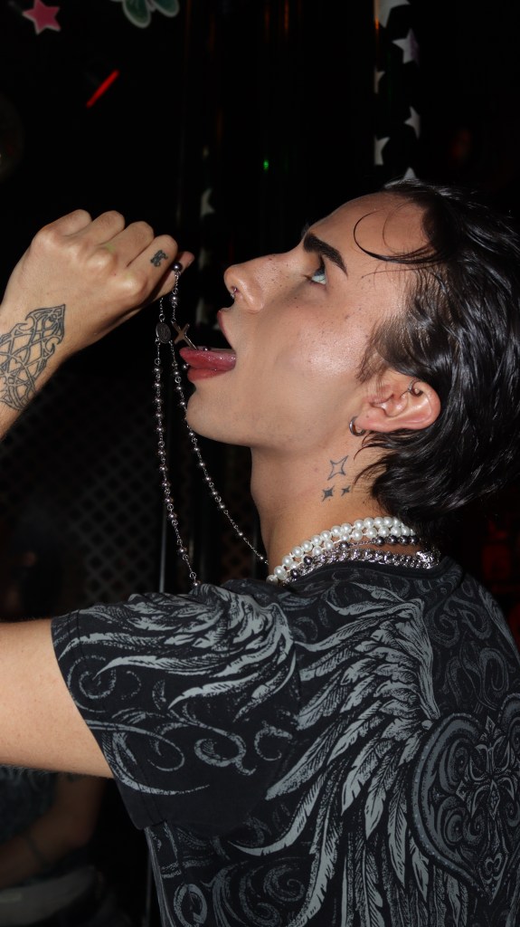 K: Visto con prendas anchas o ajustadas, pero siempre con mucho brillo, colores negros, grises o blancos. La clave es ir arrollador y cómodo contigo mismo. En mi maquillaje, no pueden faltar las pecas, el fijador de cejas y un buen gloss. Luego me lleno de collares y perfume Prada. Anillos solo cuando me acuerdo, pero en mi look no puede faltar una cruz o un rosario.