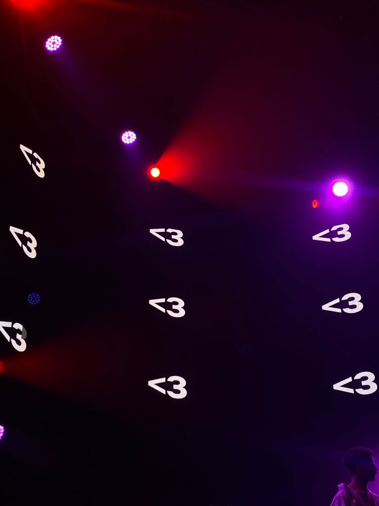 Finalmente, el momento más esperado de la noche llegó con un emotivo gesto. Los artistas anunciaron su llegada con una cuenta regresiva, que comenzó desde el 90 hasta llegar al tan esperado «<3», desatando la euforia entre el público. Durante esta canción, la entrega tanto de los artistas como del público fue palpable. Las voces se unieron en un coro atronador mientras todos coreaban el icónico estribillo: «El amor es <3, a veces 3 2, a veces 2 3…».