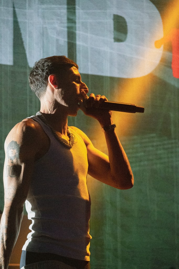 El mítico tema “CoCo” de O.T. Genasis, popular allá cuando Bruno Mars encabezaba listas de éxitos, sirvió como transición entre el final del showcase de Disobey y la aparición a pelo de We$t Dubai, que desde el primer minuto de su presentación recorría el escenario de punta a punta con una energía que le hizo sudar de principio a fin. Él aterriza en el escenario de la Sala On después de que temas suyos rocen las veinte millones de reproducciones en Spotify. Sus colaboraciones con artistas de renombre de la talla de Duki, con quien mantiene un estrecho vínculo y tiene cita el 7 de junio en el Bernabéu, le han hecho ganar un amplio reconocimiento en los últimos meses. Se está haciendo escuchar y tiene mucho de lo que hablar.