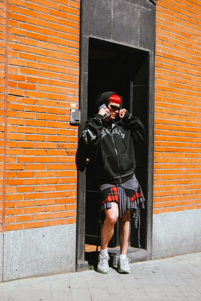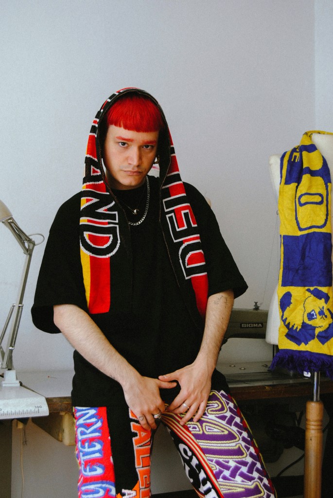 P: En el concurso entré un “poco desnudo” en el sentido de que no sabía que quería, no sabía dónde me metía. A nivel estético sí que tenía un estilo definido, siempre he tirado por el upcycling y por una estética muy grunge, pero me considero una persona con un estilo muy cambiante. Una persona que vea mis tres colecciones reconoce mi identidad, aunque realmente no tienen nada que ver unas con otras. La última es muy colorida, tiene muchas bufandas, la segunda es muy minimal, con colores básicos, solo faldas y tops. La primera era una colección introspectiva muy heavy con abrigos y cuerpos semidesnudos. En esta cuanto un poco la historia de mi vida.