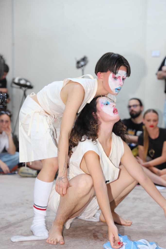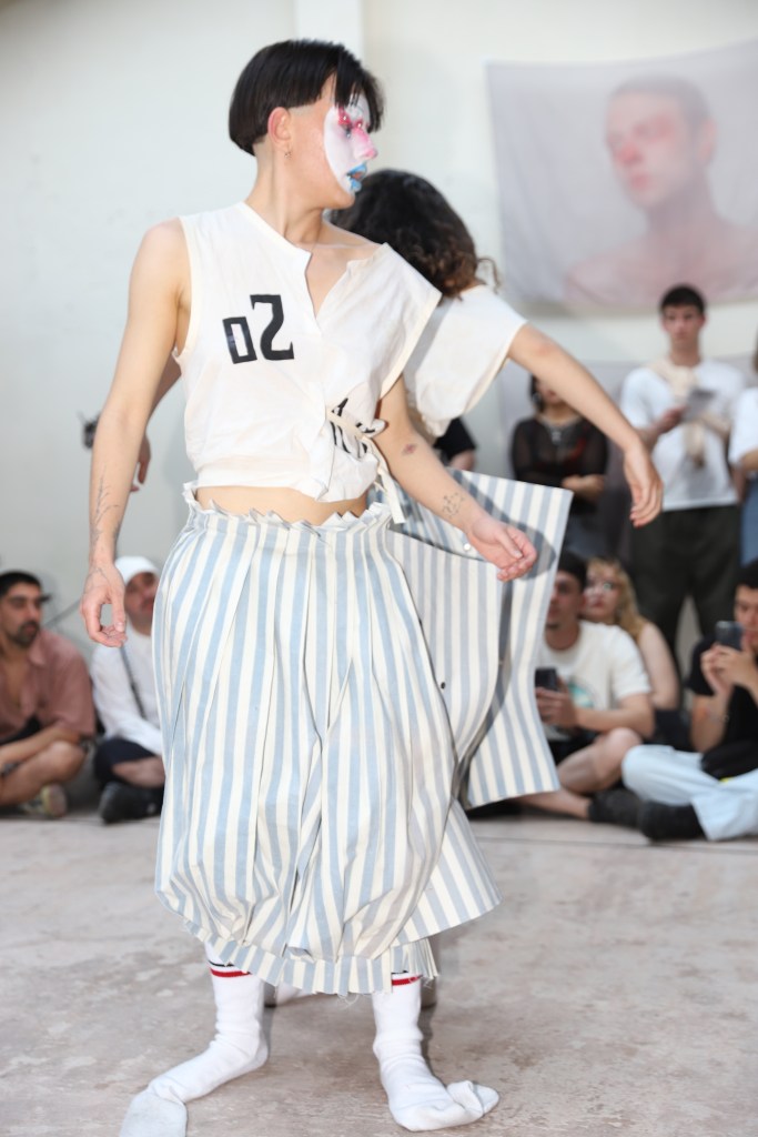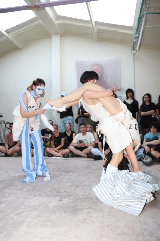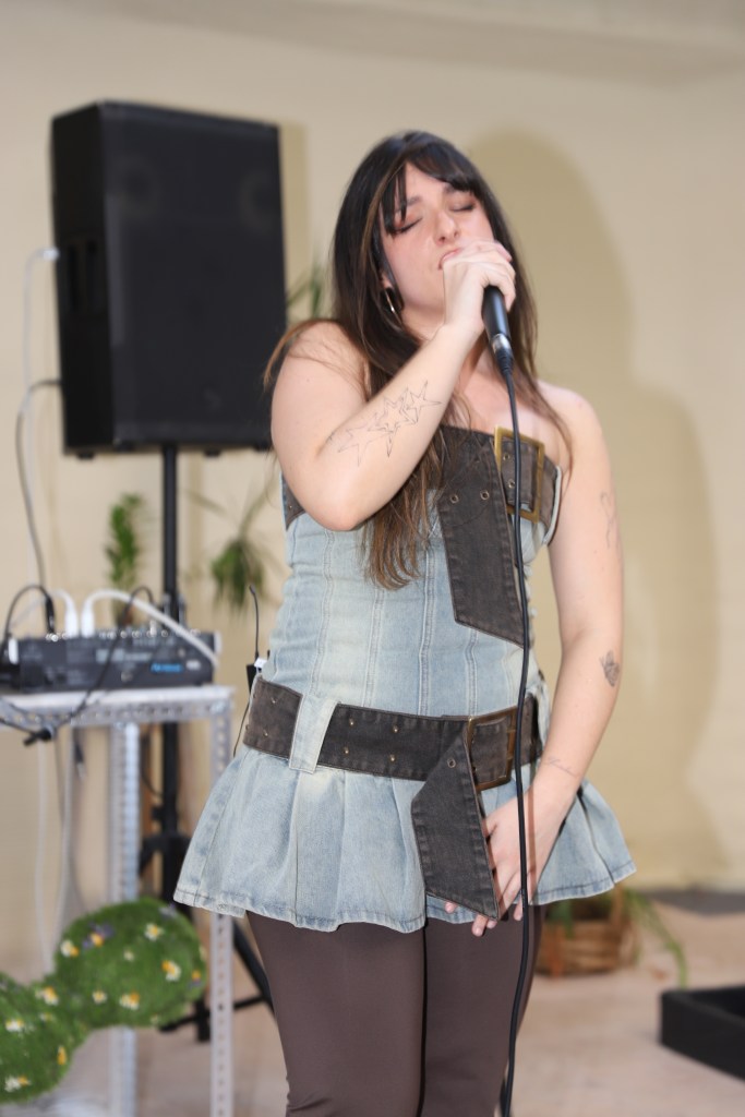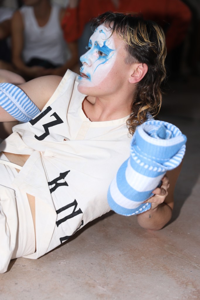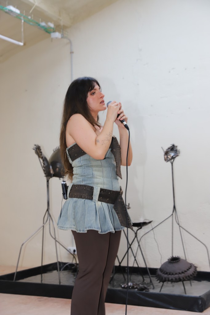 Tras la actuación de Lotta P, que se ha llevado los gritos y aplausos de un público que iba en aumento, se han sucedido dos performances: la primera de ellas, perteneciente al colectivo de diseño de moda Kids next zilch, ha conectado al público con el interior de una infancia alterada por traumas y represión. Caracterizados de motivos a puente entre lo circense y lo infantil, este grupo de performance ha paseado por la sala principal de Lahipoteca entre gritos agónicos que surgen desde dentro de aquello que intenta ser ocultado pero que forma parte de la identidad de cada una. A continuación, Clara Escalera ha deleitado al público con un espectáculo cómico y satírico de máscaras y disfraces simulando una especie de “carnaval de la miseria actual” abordando temas como la emergencia climática, la cultura del consumo o la cuestión de la vivienda.