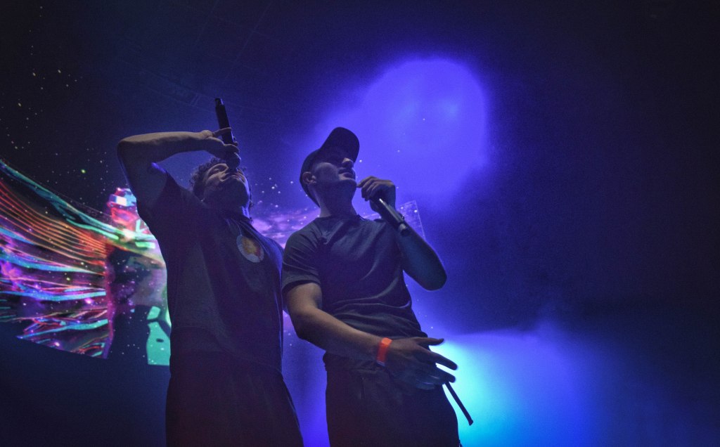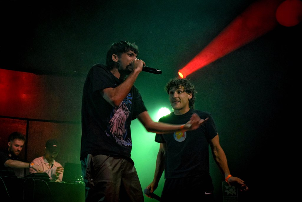 Además, el proyecto de John Pollõn no es en solitario. El show perteneció a un grupo de amigos que celebraban ver al otro en el escenario. La fiesta empezaba arriba, pero todo el lugar se contagió de esta. Algún que otro móvil del público cayó mientras el artista los cogía para grabar desde arriba y unos pocos terminamos recibiendo agua que nos lanzaban. Lo que es claro es que el buen ambiente nunca faltó.