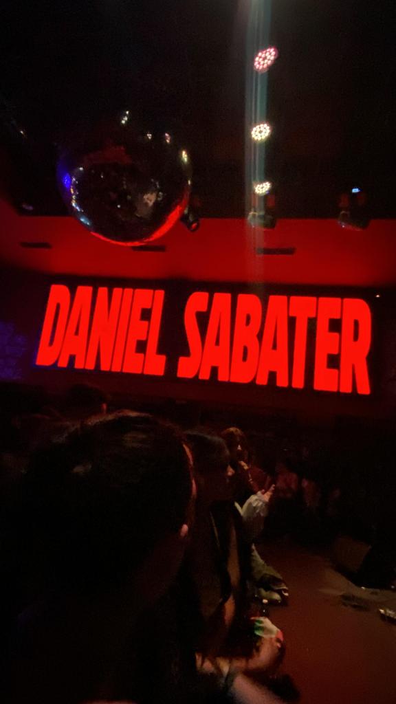 21:30 – En la Sala Panda Club, los nervios de los fans eran palpables ante la espera del gran momento. El cartel se encendió con el nombre de «DANIEL SABATER» en rojo, desatando un coro de gritos al unísono. La sala estaba más que preparada para recibir al cantante murciano.