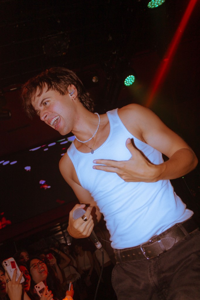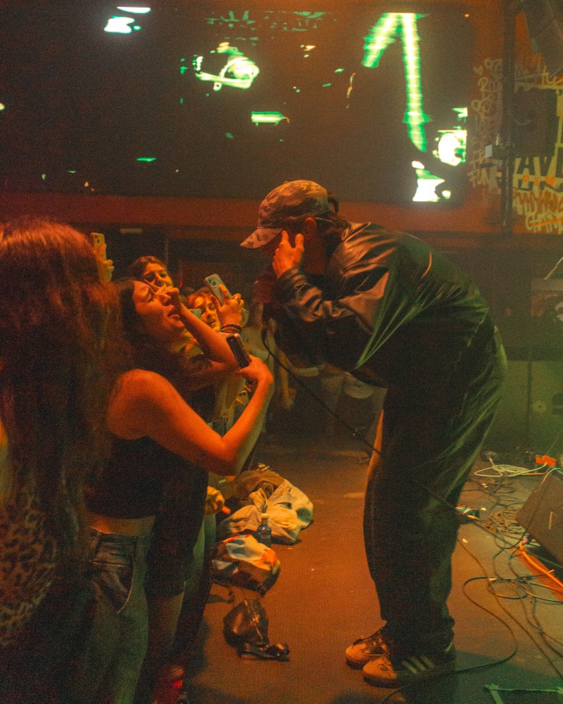 Antes de una de las canciones más sinceras del EP según el artista, «Saco de Boxeo«, se tomó un momento para compartir una reflexión que seguro que caló en el público. «Quería despedirme hablando un poquito del EP, de la siguiente canción», comenzó. Recordó y nos comentó una conversación que le marcó con ODDLIQUOR, un productor y cantante madrileño, quien le preguntó: «¿Cómo estás, tío? Pero en serio, ¿Cómo estás?». Esta pregunta llegando en un momento difícil: «Me pilló en una época que estaba fatal, de estas que no estás feliz con lo que haces o lo que eres» le llevó a hacer esta canción.
