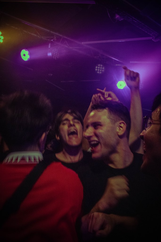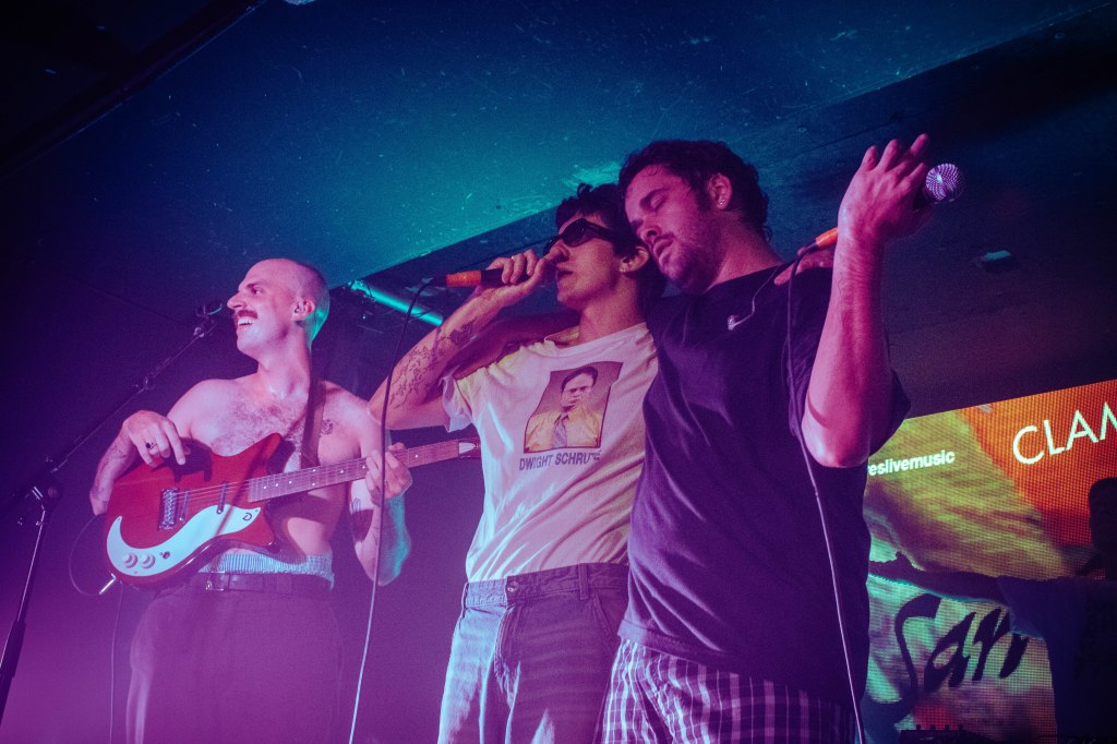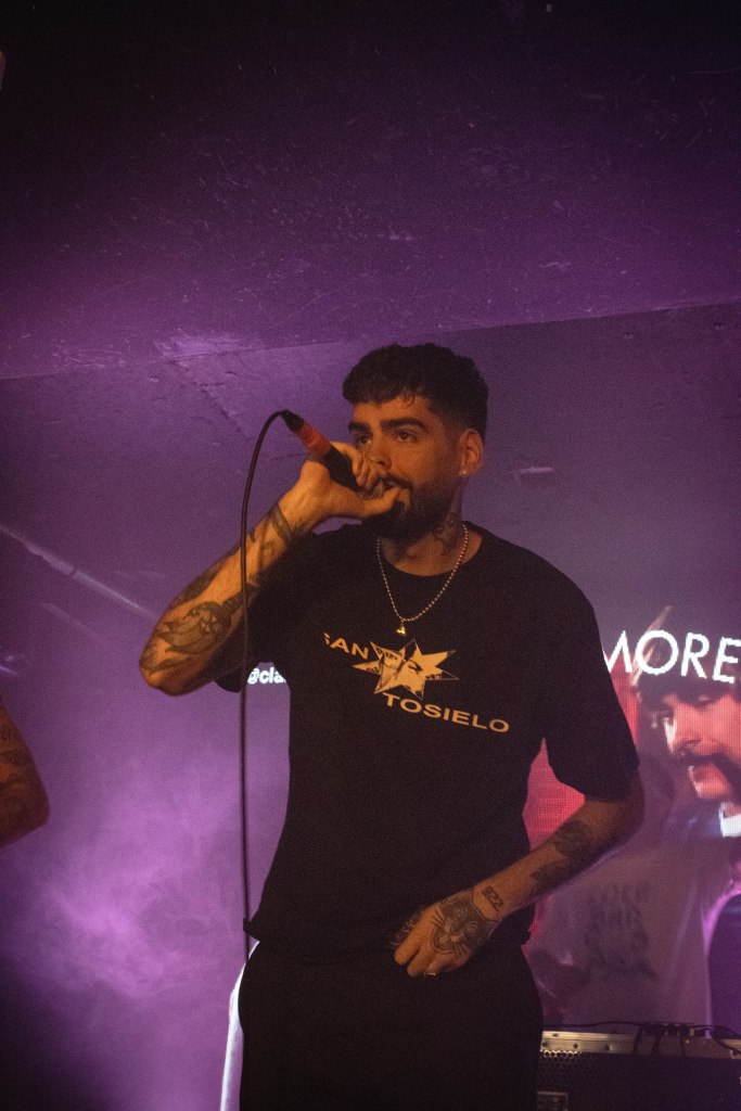 Pronto ese tórrido calor vivido en la cola se trasladaría a la Sala Clamores. San Tosielo estuvo arropado por su gente durante las dos horas de show. El dúo canario celebró un concierto que era una fiesta entre colegas, y no solo por los amigos que acompañaron al grupo para cantar canciones icónicas como Choclock en «RIP Cupido», Toldos Verdes en «Es una pena» y «Sin ti (no quiero)» , Mentira en «27», e incluso One Path como DJ; sino porque sus amigos también fueron los que estuvieron presentes en el público. La interacción entre Pablo y Adrián con los mil asistentes fue permanente durante todo el concierto, intercambiando nombres, conversaciones en tono jocoso, preguntas y respuestas, e incluso objetos de otro planeta como gafas de alienígenas o grabaciones con consolas antiguas como una Nintendo DS.