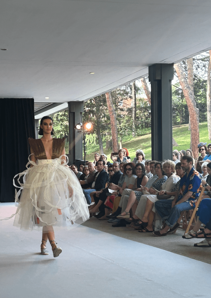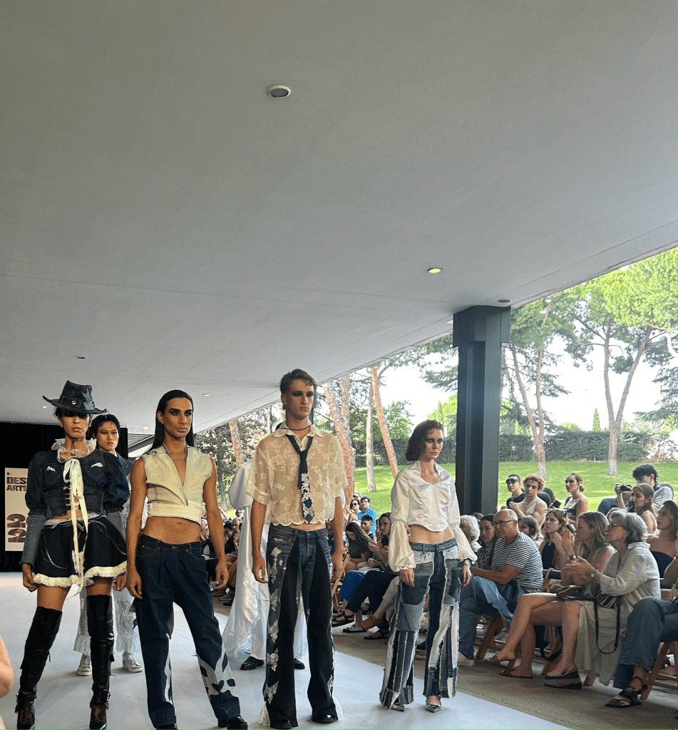 El desfile finalizó con un homenaje a la tradición madrileña, presentando trajes típicos de San Isidro y vestidos de novia que mezclaban lo vintage con lo moderno. Cada segmento del desfile permitió una interpretación libre del arte, reflejando las distintas etapas de la vida. Para nosotros, este desfile simbolizó los pasos de la vida, desde la juventud en la escuela hasta las relaciones adultas.