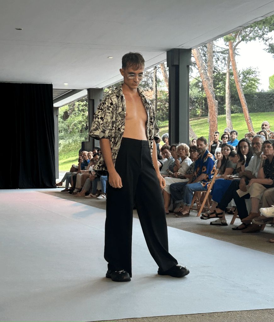 La atmósfera cambió drásticamente cuando los modelos aparecieron en atuendos oscuros, inspirados en un estilo roto y con unos colores que mezclaban la vida con la sombriedad, parecia evocar prendas relacionadas con las momias. Este segmento realizado por Pablo reflejó la influencia de lo roto y lo oscuro en la moda contemporánea, explorando la belleza en lo desestructurado.