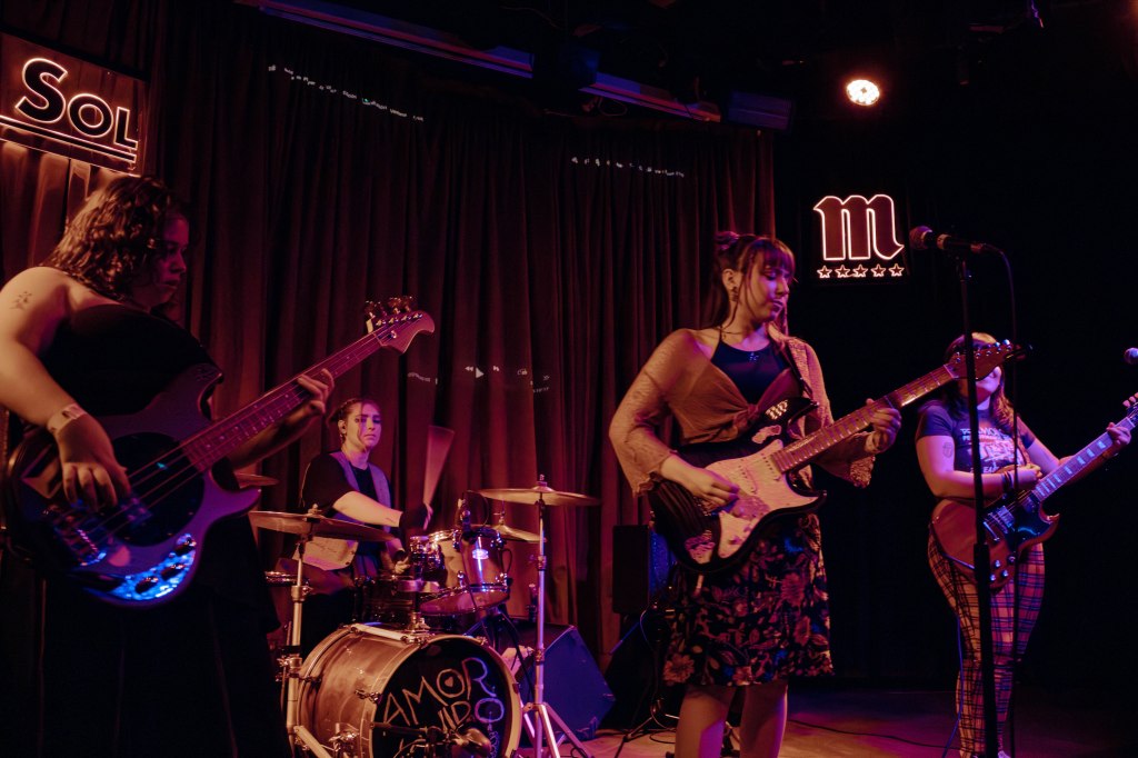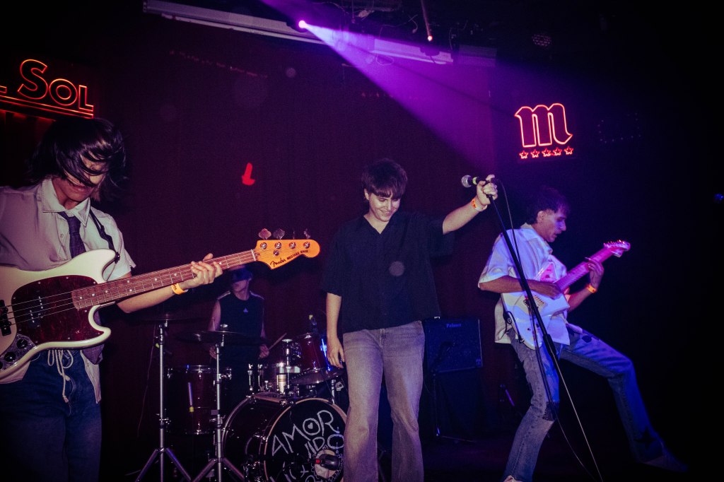 El pasado viernes 13 de septiembre la Sala El Sol acogió el último bolo de Amor Líquido. y, junto a ellas, pudimos disfrutar de Nenazas, quienes abrieron la noche con un variado set de ocho de sus temas: «Niño de Papá», «La Triste«, «Jos3 Mot4»… Sin duda el que más disfrutó el público fue «No va x tí (gilipollas)«. Al finalizar su repertorio, las chicas agradecieron la invitación al grupo de cuatro y bajaron del escenario entre sonrisas. El ambiente en la sala acabó por lo más alto en su retirada, continuando nada más que en ascenso al dar paso, ahora sí, a Amor Líquido.