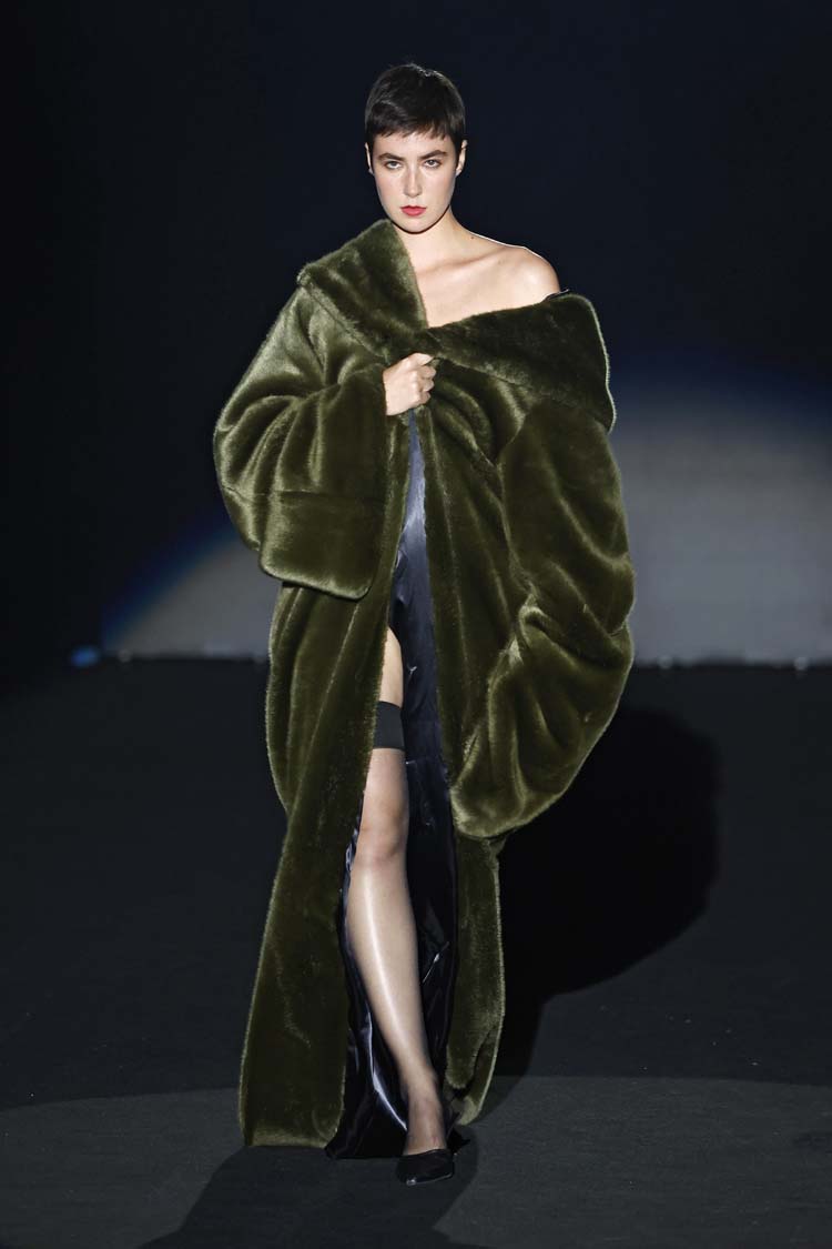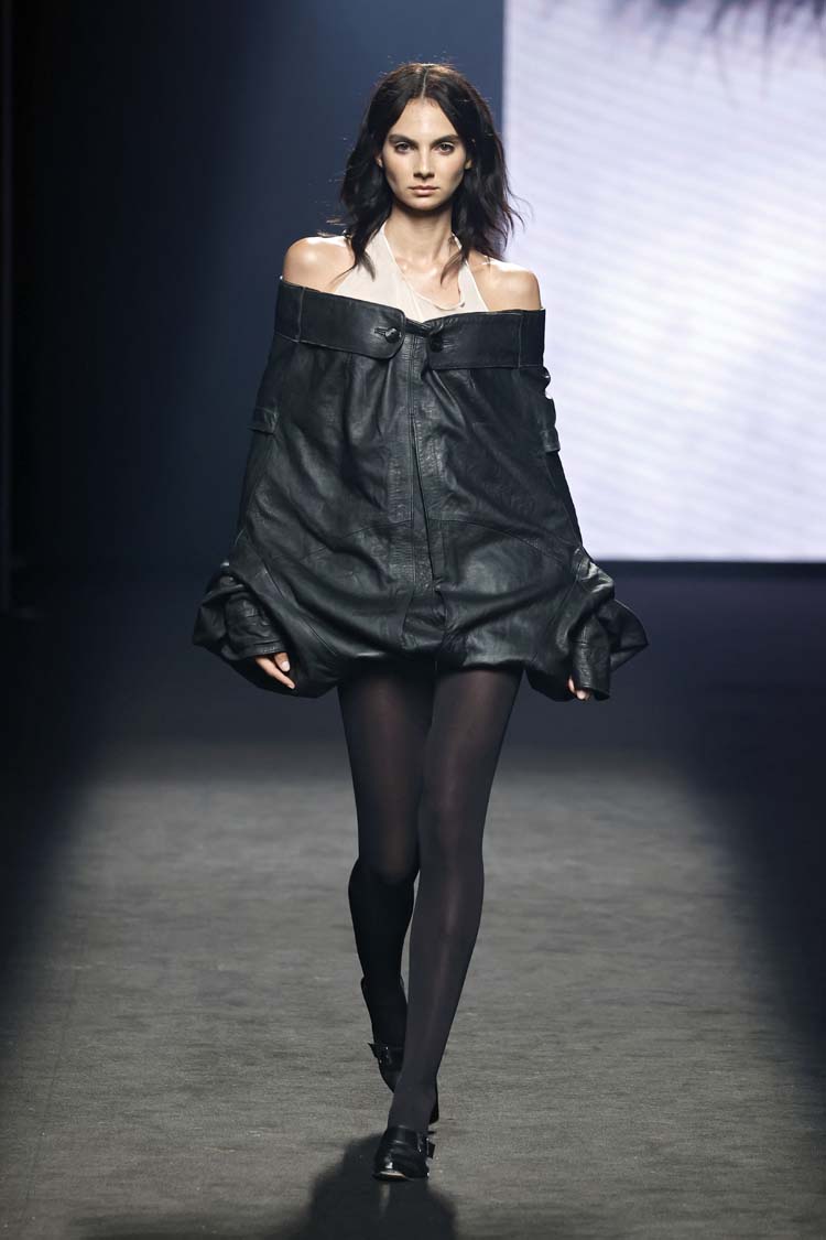 La última emergente en desfilar sería Santamarta, una marca que desde el inicio ha puesto en valor el impacto medioambiental, a través de la creación minimalista vía upcycling. En su nueva propuesta «About perception» se explora la idea de fusionar imperfección y belleza. El primer enfoque se basó en el minimalismo, pero poco a poco se introdujeron prendas multiposición. Con arrugas en el cuero y pliegues en los tejidos, la colección utiliza materiales reciclados como trajes de lana y cazadoras de cuero, reflejando un compromiso con el diseño sostenible y el mínimo impacto ambiental.