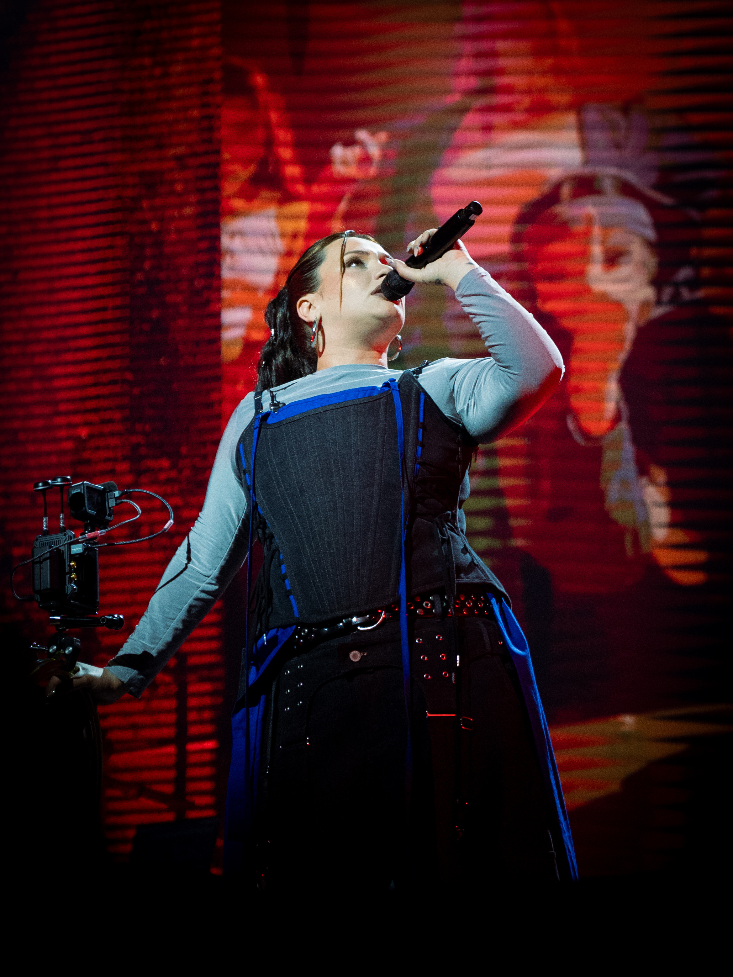 La escenografía giraba en torno a ese nuevo universo simbólico que ha construido en Kaelis: cielos, maletas, escaleras… Todo hablaba del vértigo, del miedo a coger un avión y de la necesidad de volar. Cada elemento de la puesta en escena estaba estudiado al detalle, desde el movimiento de las cámaras —que ofrecían planos magníficos— hasta la disposición de los músicos o la coreografía de las bailarinas, que destacaban la presencia de la artista sin robarle protagonismo.